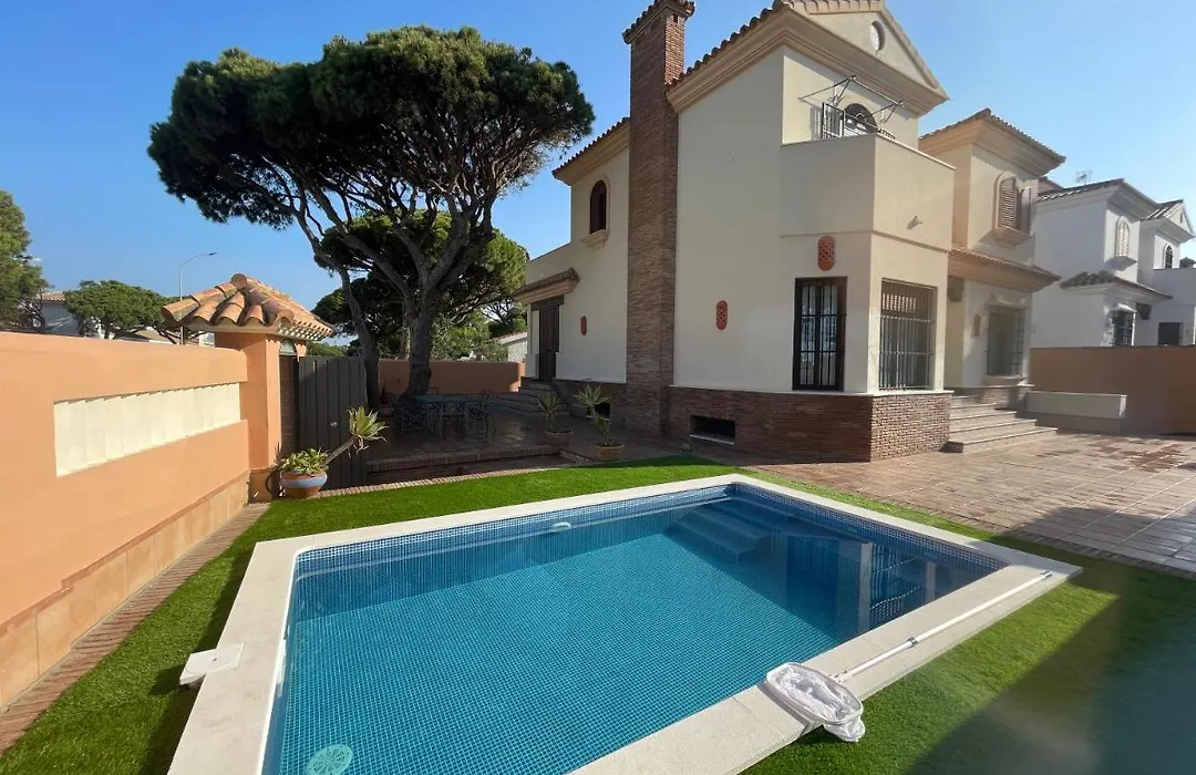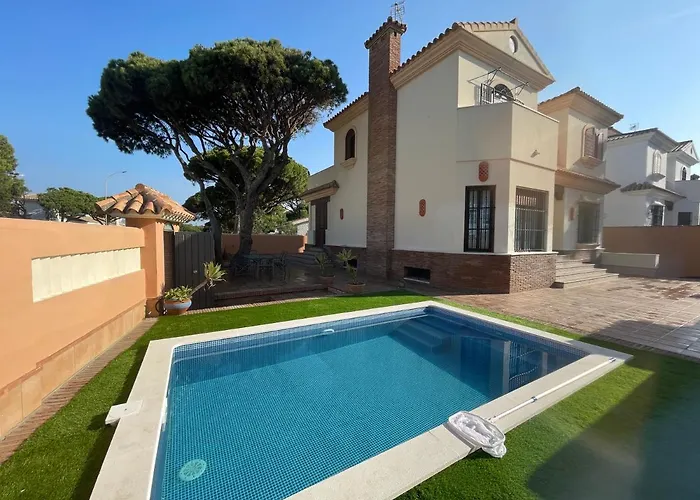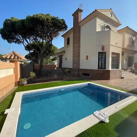Villa En Playa La Barrosa dysponuje prywatnym basenem kąpielowym oraz leży w dzielnicy Novo Sancti Petri. Willa oferuje sprzęt do barbeque, pole golfowe i ogród, a Laguna de Campano jest w prawie 3 km.